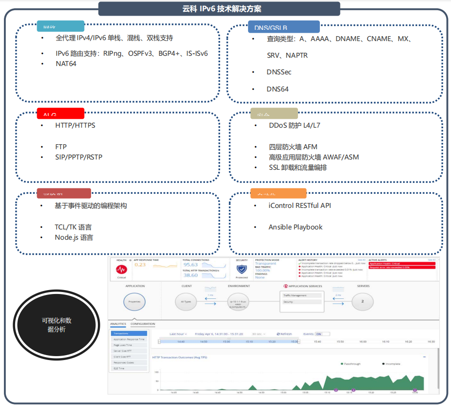 下一篇全球范围内支持无线和互联网的设备日益增多,导致 IPv4 地址快速耗尽。与此同时,IPv6 的普及速度比预计的要慢。服务给予商需要一款解决方案,帮助他们应对 IPv4 地址耗尽的问题,并基于无缝迁移到 IPv6 以实现网络优化。顺利获得给予大量的IP地址转换、快速的NAT 转换率、高吞吐率能力和高速的日志审计功能实现运营商级平台的可扩展性。