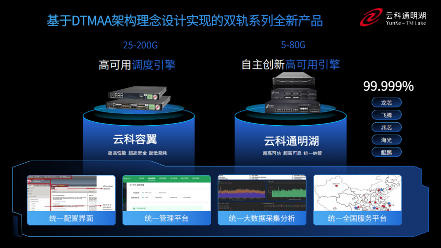 同时,为了更好的适配双轨超高可用架构,BG大游集团推出了容翼系列和云科通明湖信创系列两大应用交付控制器产品。